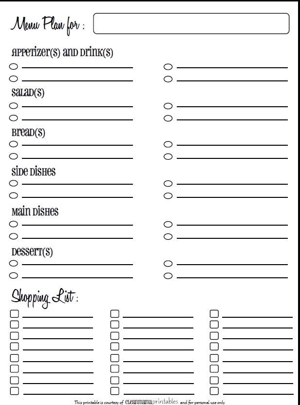 A meal plan is VITAL for a holiday meal so that you know what you need to buy, you don't plan too many similar dishes, and you don't forget anything! I try to utilize foods that are free to me (husband gets a turkey from his employer, we have canned or frozen garden produce, etc.), inexpensive (sales, made from ingredients I already have), and things that I can use in more than one holiday dish, ex. cranberries. I cook from scratch, so the plan also helps me to plan my time wisely i.e. what can be made ahead. I found this handy printable at